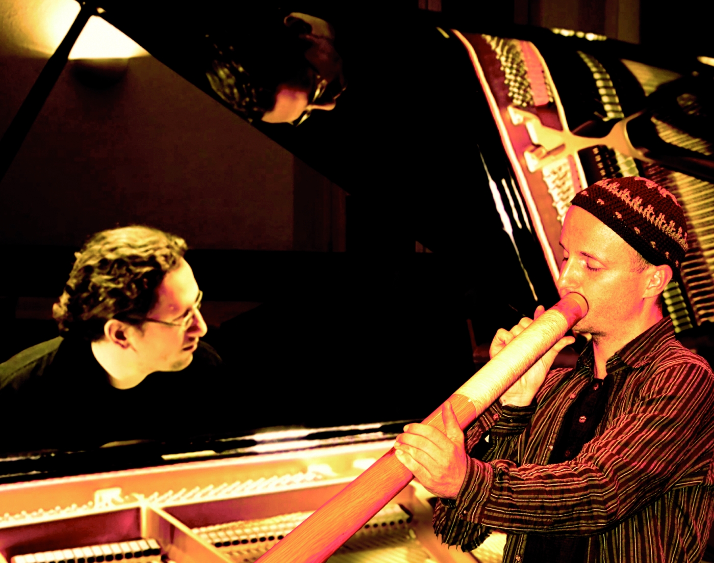 Fließende, jazzige Melodien und Flächen am Klavier kontrastieren oder verschmelzen mit dem an natürlichen Klangfarben reichen Didgeridoo. Christian Bestle hat sich diesem archaischen Obertoninstrument und "Ein-Personen-Rhythmus-Orchester" ab einer Australien-Reise im Jahr 1998 verschrieben. Florian Malecki studierte an der Münchner Musikhochschule und kombiniert seine klassischen Wurzeln mit modernen Einflüssen. Zusammen spielten sie als "Die Doppelgänger" zwischen 2001 und 2006 zahlreiche Konzerte – auch in Dachau. Das Duo hat 2004 die vielbeachtete CD-Einspielung "Morgen II" mit ihrer ganz eigenen, sphärisch-meditativen Musik veröffentlicht.