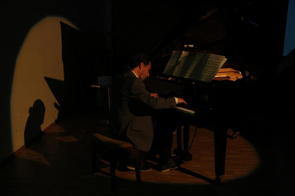 Das Besondere von Music And Visual Arts aber ist, dass die Musik auf der Bühne zusammen mit visuellen und darstellenden Künsten präsentiert wird. In diesem audio-visuellen Kosmos treffen Arbeiten zum magischen Quadrat des Künstlers Ralf Hanrieder auf sanfte Gitarrenklänge, drei seiner Bilder und Zahlenkonzepte hat Malecki für Klavier vertont.